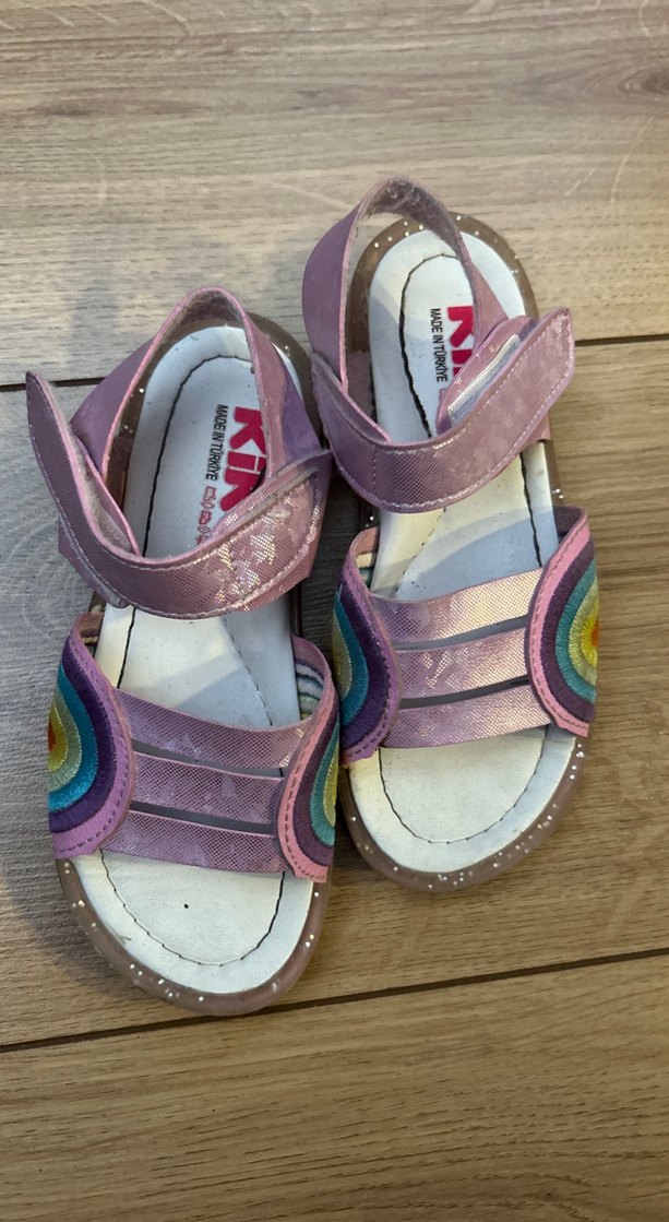 Kiko marka kız çocukları için pastel tonlarda bağlama desenli, cırt cırtlı, rahat kauçuk sandaletler.