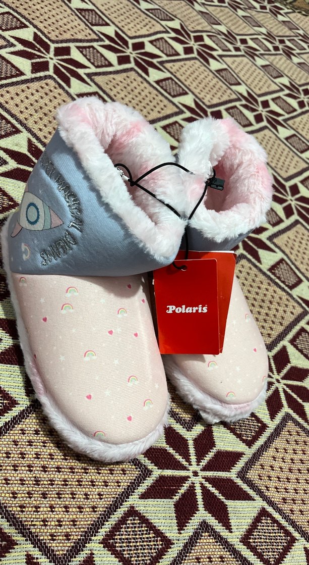 Kız çocukları için çok renkli, peluş detaylı ve yumuşak iç astarlı sıcak terlikler. Polaris markasına ait rahat ve normcore tarzda tasarlanmıştır.