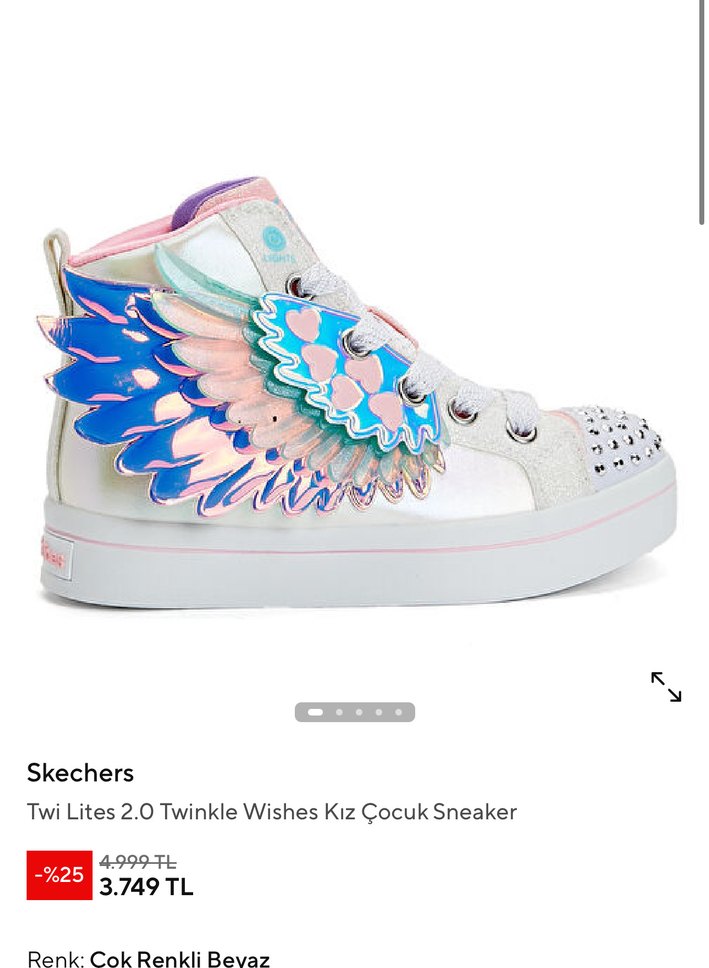 Skechers kız çocuk spor ayakkabı, çok renkli tie-dye desenli, kauçuk tabanlı ve cırt cırtlıdır. Kanat detayları ve ışıklı tabanı bulunur.