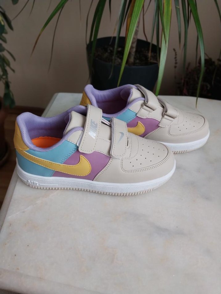 Kız çocukları için çok renkli, pastel tonlarda batik desenli, cırt cırtlı ve kauçuk tabanlı spor ayakkabı.
