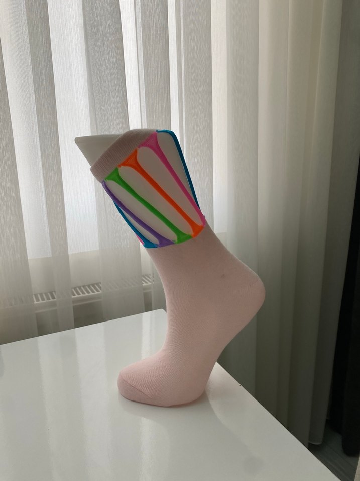 Kız çocukları için çok renkli tie-dye desenli, yumuşak sentetik kumaştan yapılmış çoraplar.