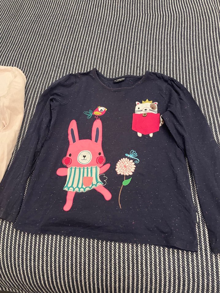 Kız çocuk için triko dokulu, çok renkli baskılı, uzun kollu, rahat kesim ve yuvarlak yakalı tişört. Tavşan, kuş, çiçek ve kitap okuyan kedi desenli. İkisinin fiyatıdır
