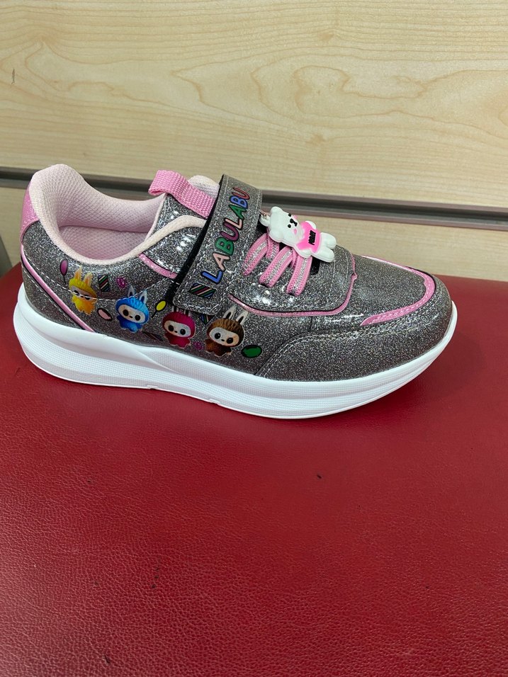 Çok renkli, baskılı sokak stili kız çocuk spor ayakkabısı. Velcro bantlı ve kauçuk tabanlı, rahat kullanım sağlar.
