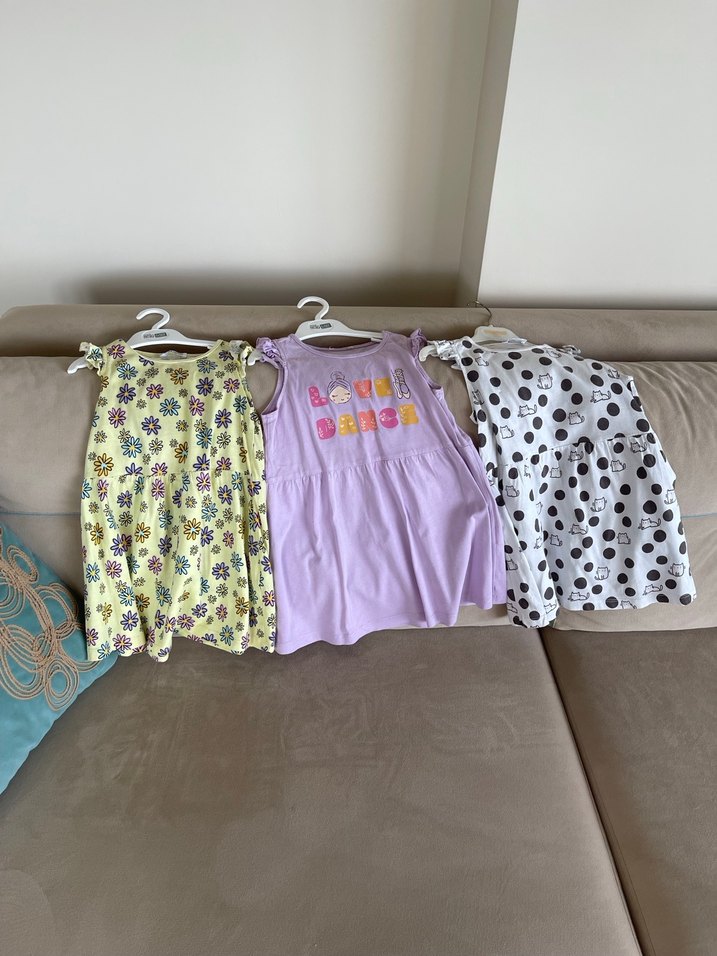Kız Çocuk Çok Renkli yazlık Elbise 3 adet#üç adet Pamuklu yazlık