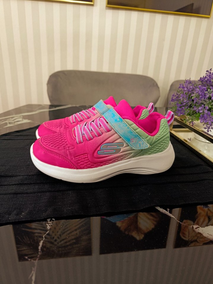 Kız çocuklar için pastel çok renkli yılan desenli, kaymaz tabanlı ve cırt cırtlı spor ayakkabılar, trend sokak modasına uygun. 33,5 numara Genel olarak tertemizdir tekinn ön ucunda mercimek tanesi kadar sürtme var ayak konforu için tercih edilebilir