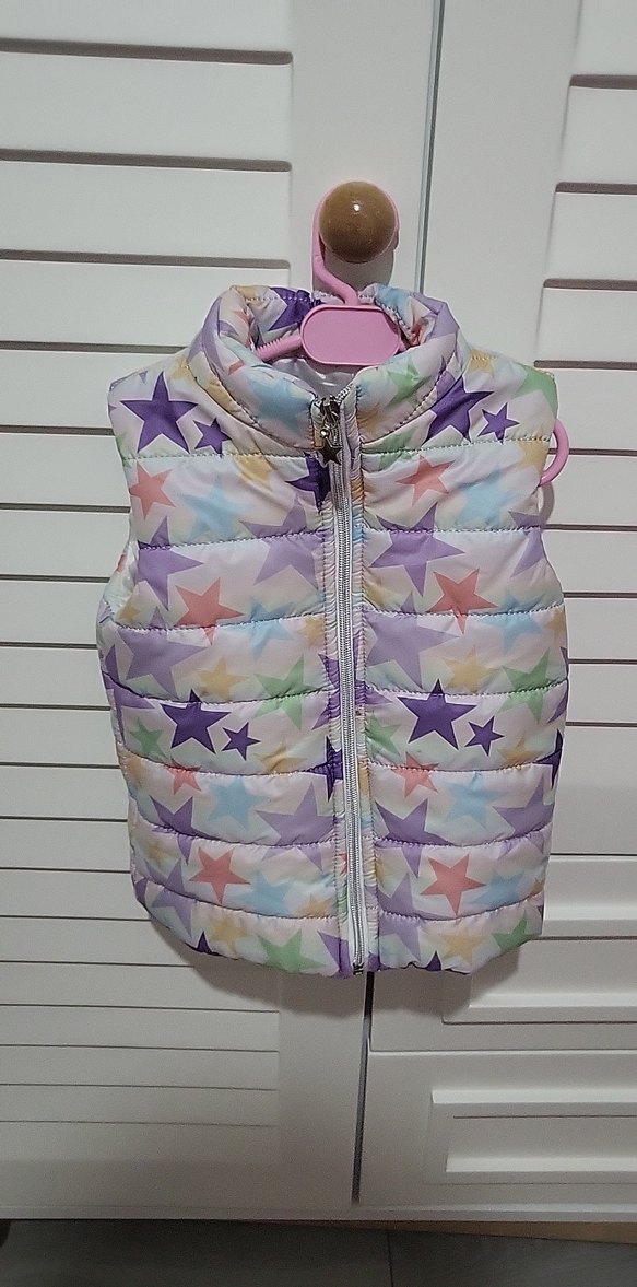 Kız çocuklar için yumuşak ve sıcak polar kumaştan yapılmış, çok renkli pastel yıldız desenli, fermuarlı ve straplez yaka detaylı, dar kesim yelek. ⭐ ince. kalın degil