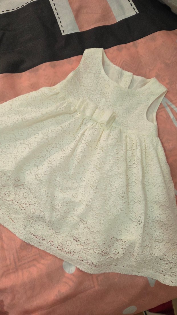 Dantel kumaş ve işlemeli desenlere sahip beyaz kız çocuk elbisesi, bol kesimiyle klasik ve bohem tarz sunar.