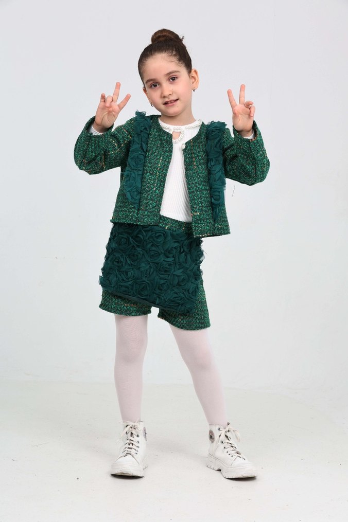 Kız Çocuk Dantel Detaylı Yeşil Bolero