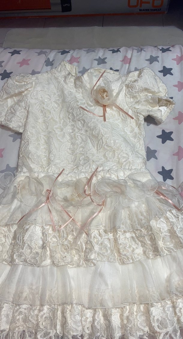 Dantel ve işlemeli desenlere sahip, askılı ve straplez yakalı, beyaz fitted kız çocuk elbisesi. İnce tül ve fırfır detaylarıyla süslenmiştir.