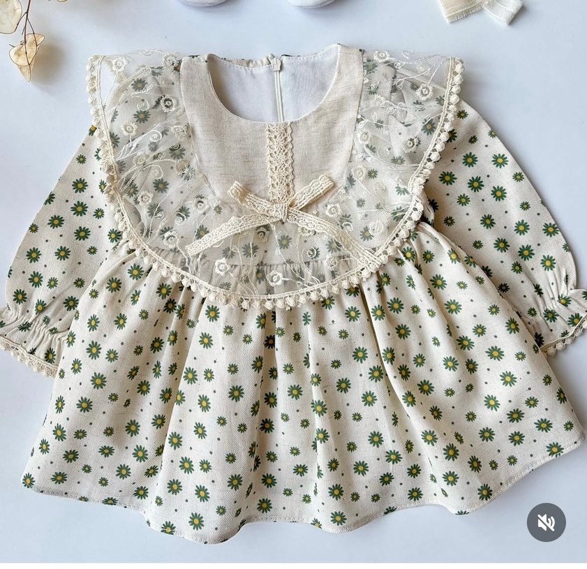 Uzun kollu, yakalı ve nakışlı çiçek desenli kız çocuk elbisesi. Bol kesim ve dantel detaylarıyla bohem tarzda. Astar ve tütsü mevcut Keten kumaş sadece 1 kere giyildi hiç bır defosu yoktur