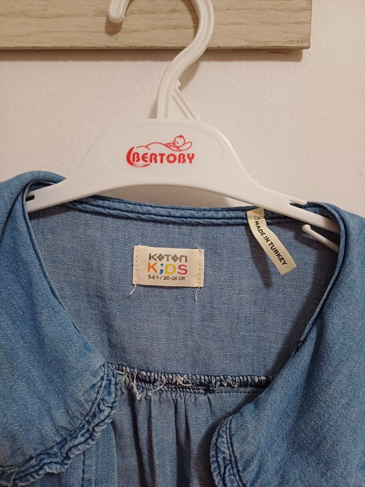 Mavi ve gri tonlarında, düğmeli ve kısa kollu kız çocuk denim bluz. Yuvarlak yakalı, bol kesim ve normcore tarzında, rahat bir tasarıma sahiptir. Bertoby markası.