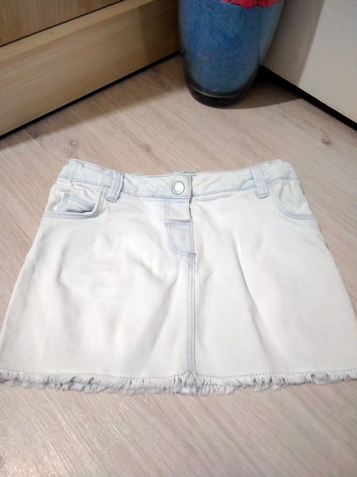 ayarlanabilir beli ve püsküllü etek ucu ile beyazlatışmış mavi kot etek , kız çocuk denim eteği.