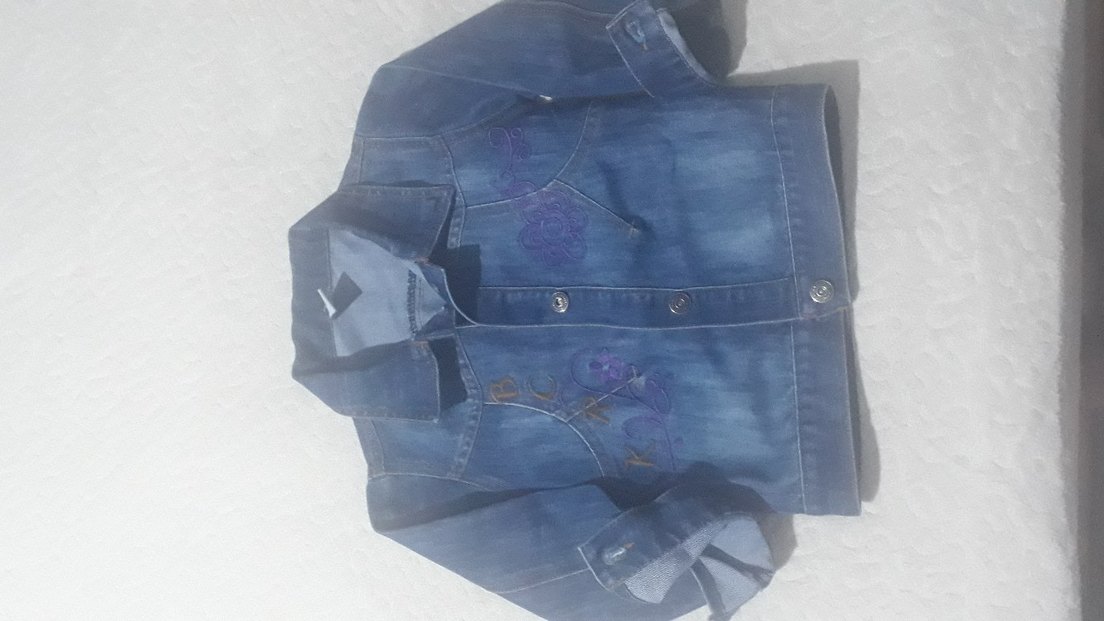 Kız Çocuk Denim Nakışlı Düğmeli Ceket