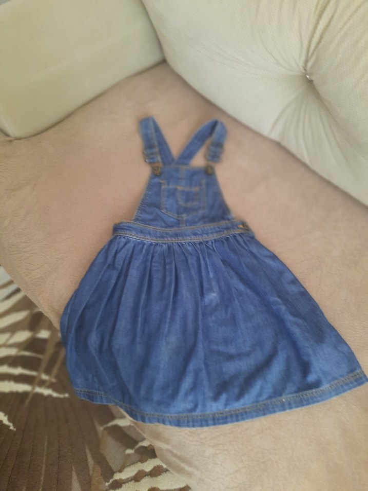 Pamuklu denim kumaştan yapılmış, straplez yaka ve fırfır detaylı, bohem tarzda fitted kız çocuk elbisesi. Pastel mavi renkte.