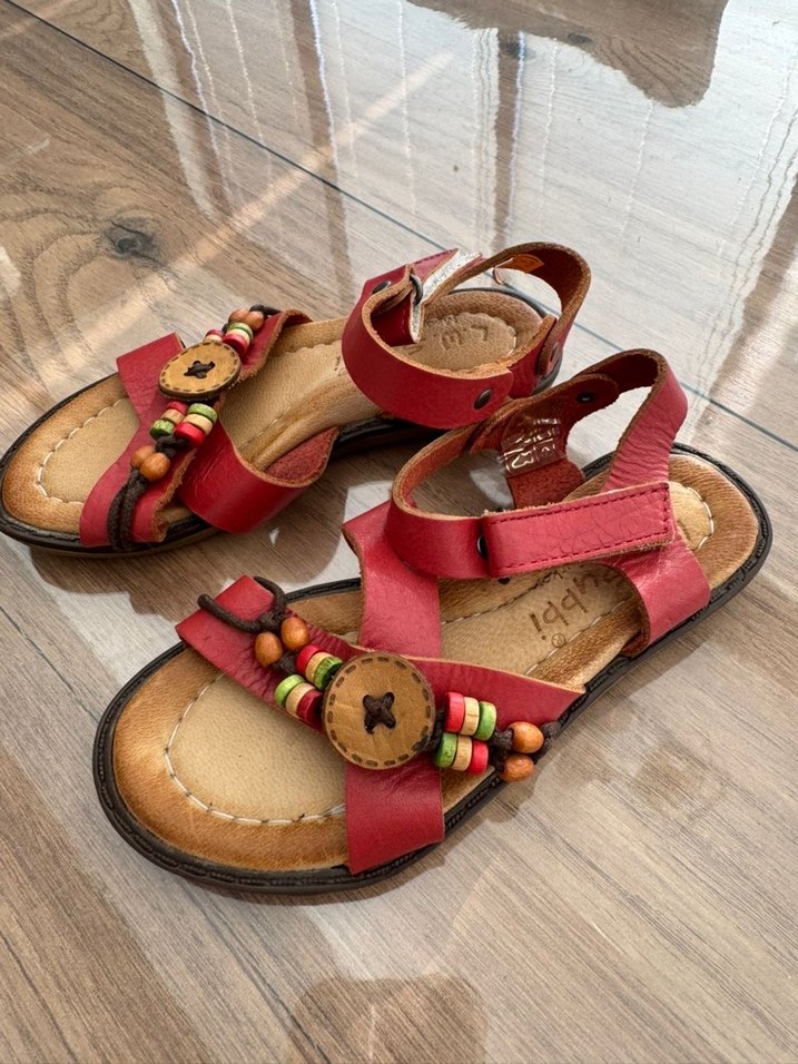 Renkli nakışlı detaylara ve tokalı kayışlara sahip bohem tarzda kız çocuk sandaletleri, rahat kauçuk tabanlıdır. Yeni etiketli ,27 numara .hakiki deri