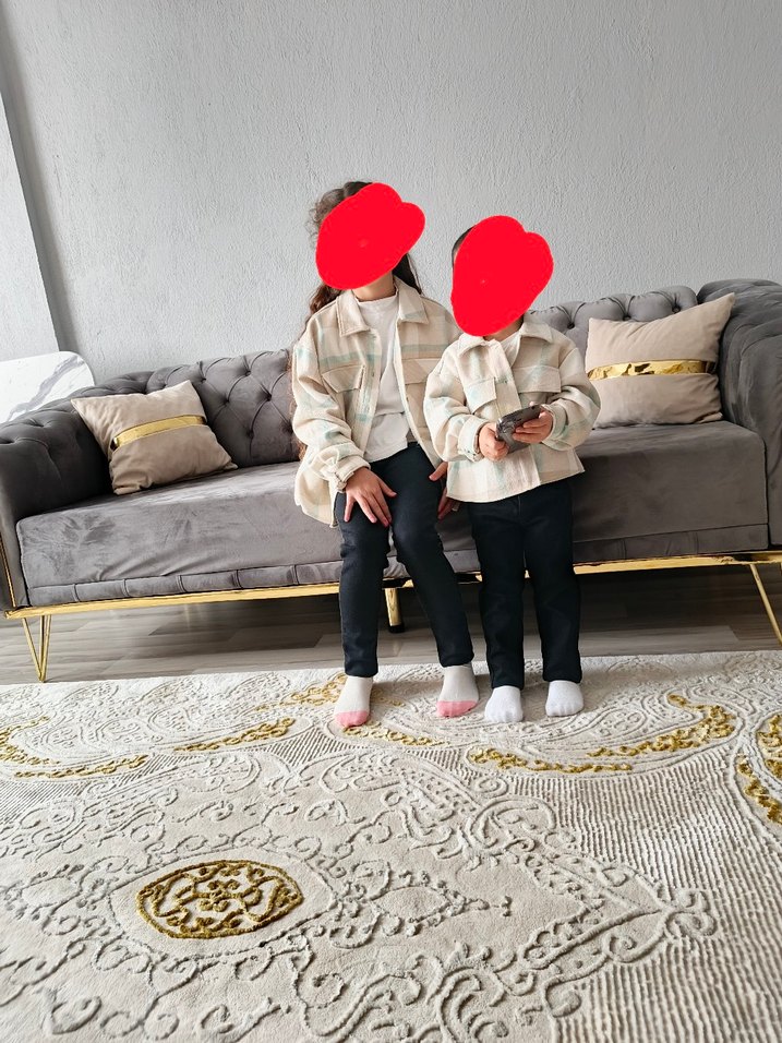 Kız çocuk gömlek, bol kesim ve puff detaylıdır. Yumuşak ve sıcak kumaştan, beyaz-gri ekose desene sahiptir.kardwş konbini ❄️ikisinin fiyatı