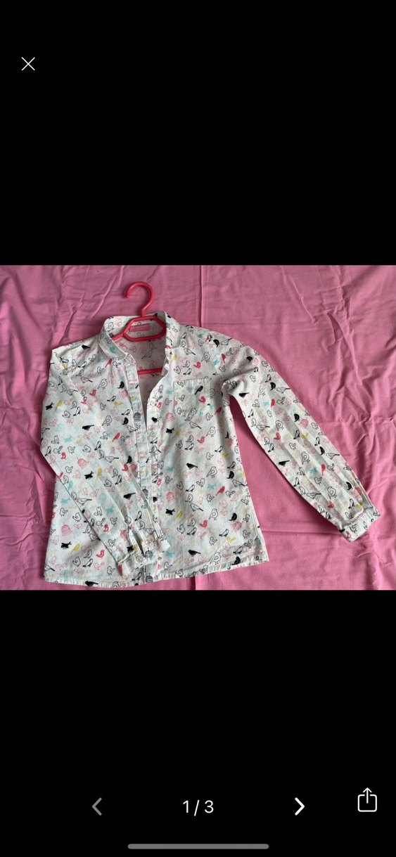 Bu çocuk gömleği, uzun kollu ve düğmeli tasarıma sahiptir. Yumuşak kumaştan yapılmış, beyaz taban üzerine desenlidir ve günlük rahat kullanıma uygundu
