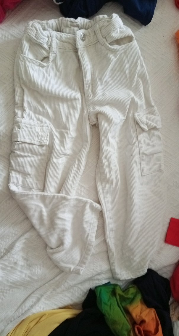kız çocuk Düğmeli Beyaz Kadife Pantolon