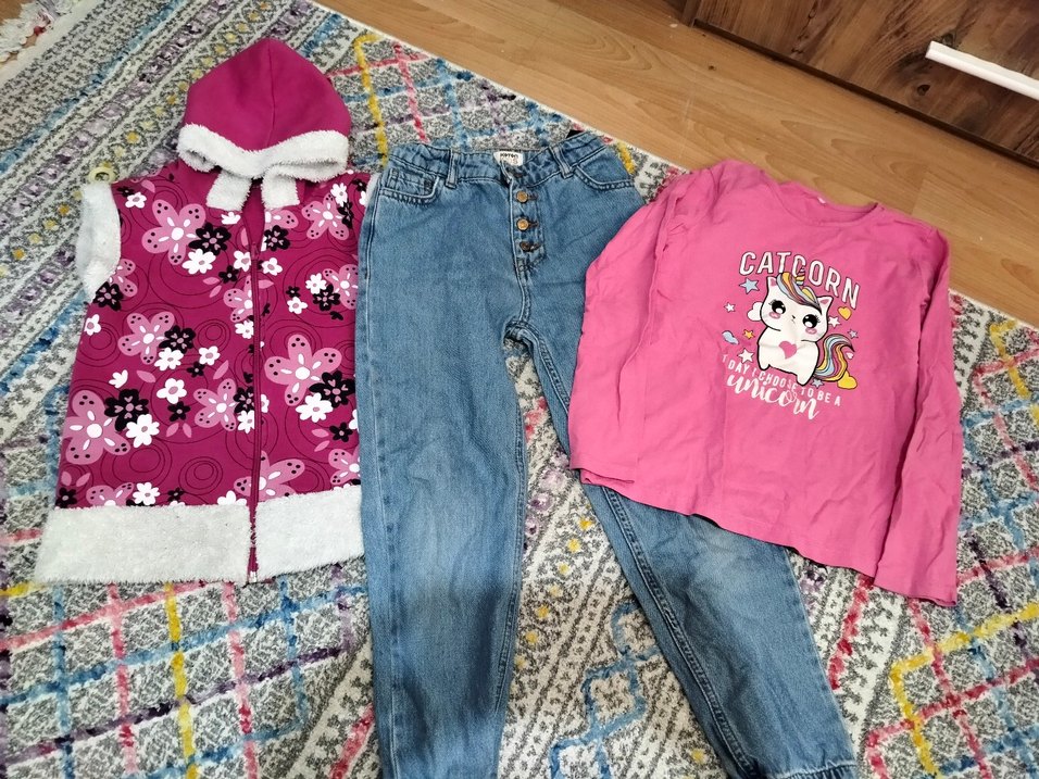 Kız çocuklar için düğmeli bol kesim denim pantolon, pastel pembe batik desenli, trend sokak stili için uygundur.
