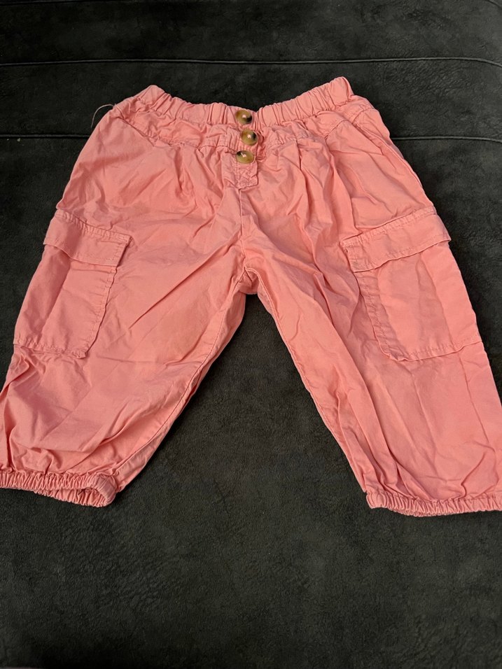 Kız çocukları loose fit, düğmeli ve yan cepli pembe pantolon, rahat sokak stili için uygun.