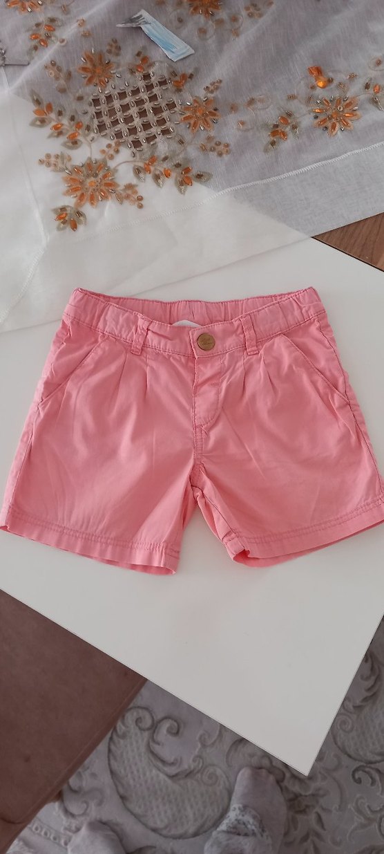 Kız çocukları için düğmeli, yan cepli, pamuklu pembe şort. Rahat ve pastel tonlarda, günlük kullanıma uygun.H&M marka 2-3 yaş için uygun.
