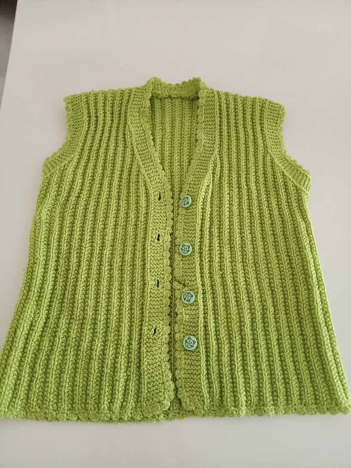 Kız Çocuk Düğmeli V Yaka Yeşil el örgüsü Yelek