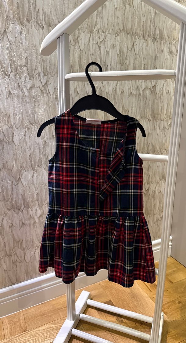 Kolsuz, bol kesim ve fırfır detaylı kız çocuk elbisesi, koyu renkli çok renkli ekose desende yurt dışından almıştım.