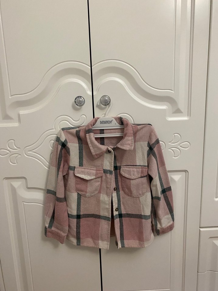 Uzun kollu, düğmeli, kısa kesim pembe ekose desenli kadın gömleği. Notlu yaka ve cep detaylarıyla rahat ve şık bir model.