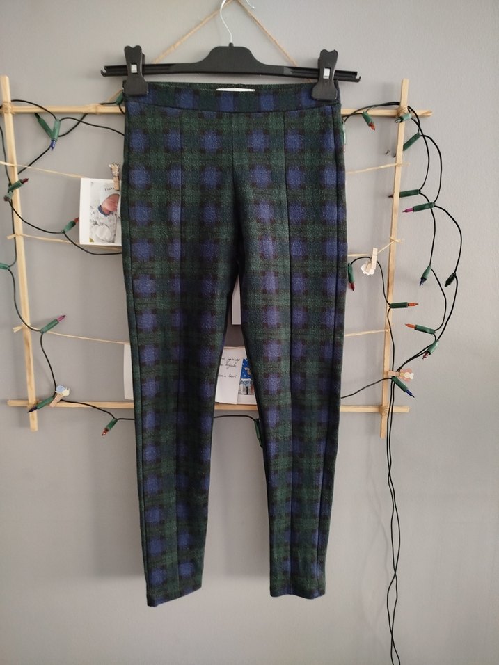 Ekose koyu tonlarda, normal boy midi kumaş kışlık tayt pantolon.