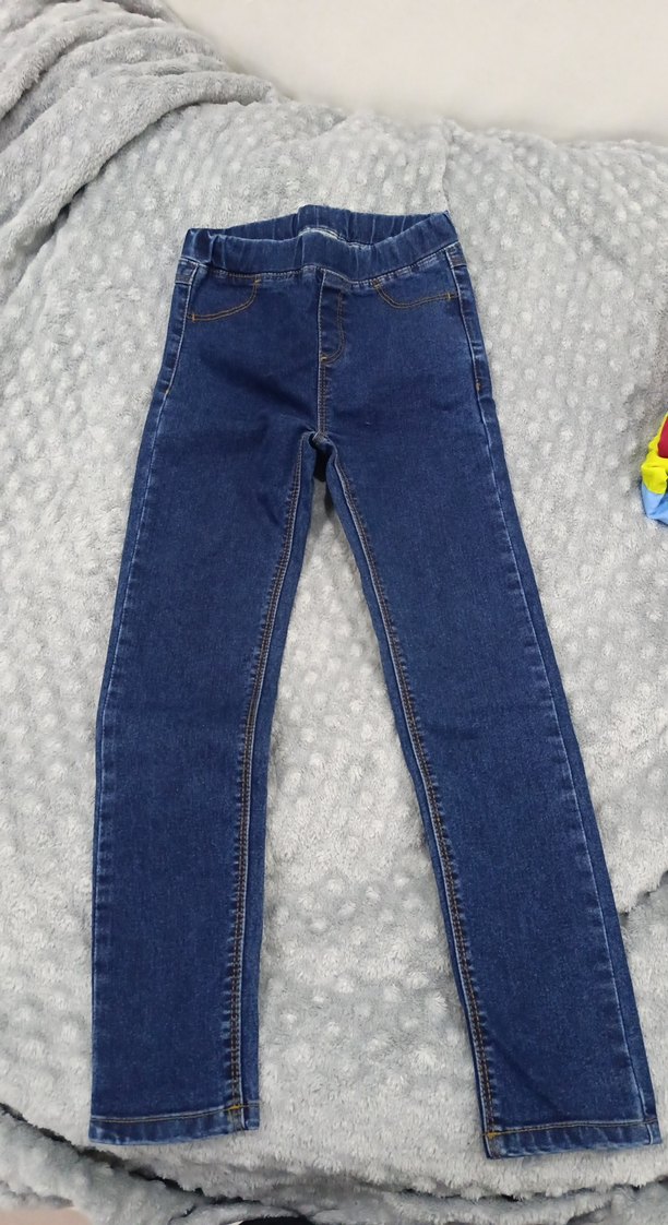 Elastik bel bantlı, normcore stilinde, düz mavi renkli, kız çocuklar için fitted kesim denim pantolon.