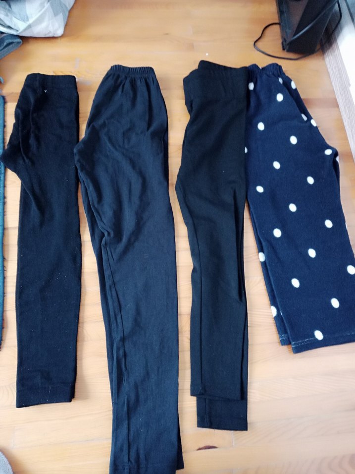 Kız çocukları için elastik bel detaylı, siyah ve lacivert beyaz puantiyeli taytlar. Denim ve yumuşak kumaştan yapılmıştır.