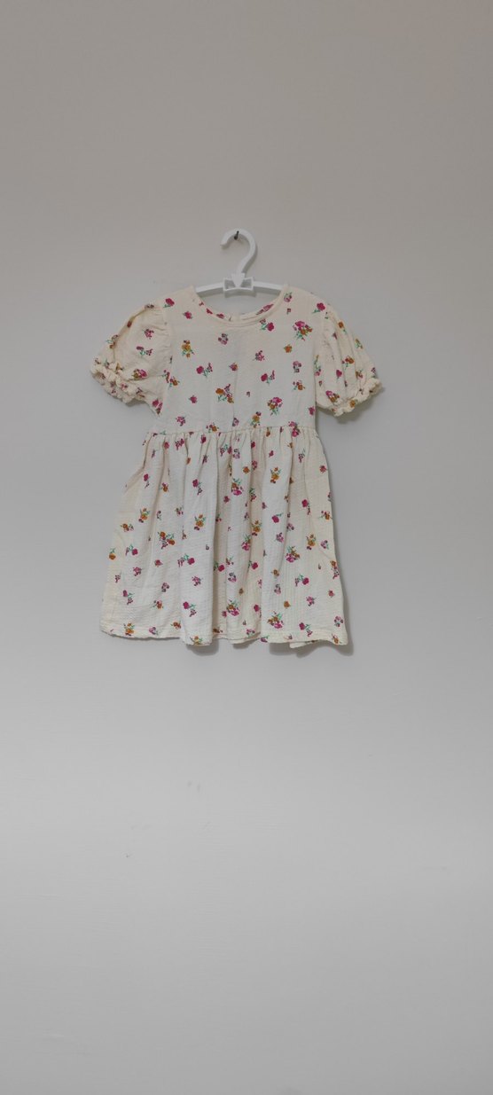 Kız çocuk elbisesi, kısa kollu ve fırfırlı detaylara sahip. Rahat kesimli, sentetik yumuşak kumaştan, bisiklet yaka ve pastel tonlarda çiçek desenli bohem tarzda. ürün boy 53 cm en 60 cm (Esnek kumaş)