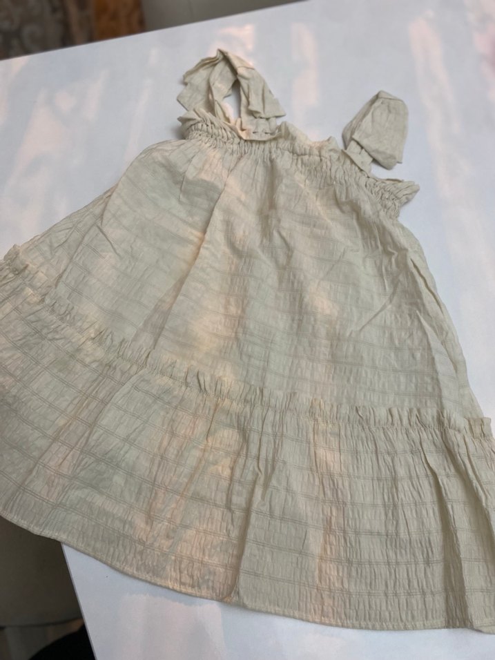 Yazlık kumaştan, fırfırlı ve straplez tasarımlı, bol kesim kız çocuk elbisesi. Bohem tarzıyla dikkat çekiyor.