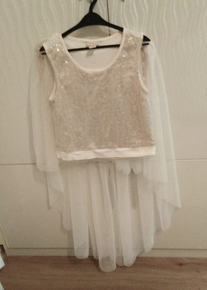 İkili takım kız çocuk elbise LCW Waikiki az kullanıldı üst bedeni 12 13 yaş alt bedeni 11 12 yaş