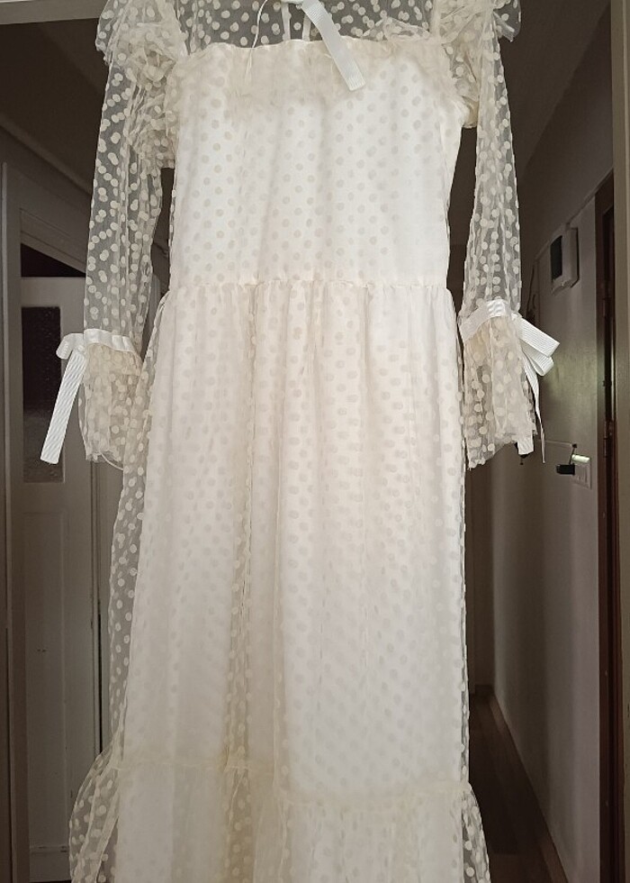 Çok kaliteli sıfır sayılır, kabartmalı puantiyeli, düğün vs. Giyilebilecek şıklıkta ve kalitede