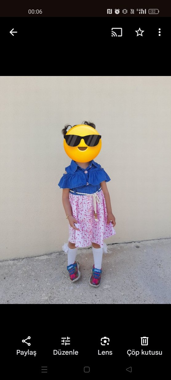 Rahat kesim kız çocuk elbisesi, renkli tie-dye etek ve fırfırlı denim üst kısmıyla trend sokak stiline uygun. sorunsuz 3 4 yas