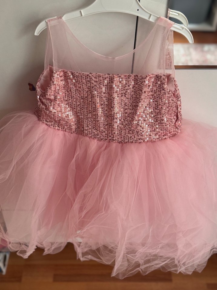 Kolsuz, payetli ve fitted gövdeye sahip pembe elbise, katmanlı tül etek ve fırfır detaylarıyla hareketli bir görünüm sunar. ✨ sadece yıl sonu gösterisinde üzerinde 45 dakika durdu bir daha hiç giymedi şeker tacını hediye olarak göndereceğim kollarında iki adet tül kolluk da mevcuttur sıfır ayarında elbise hiçbir defosu yoktur yepyeni duruyor