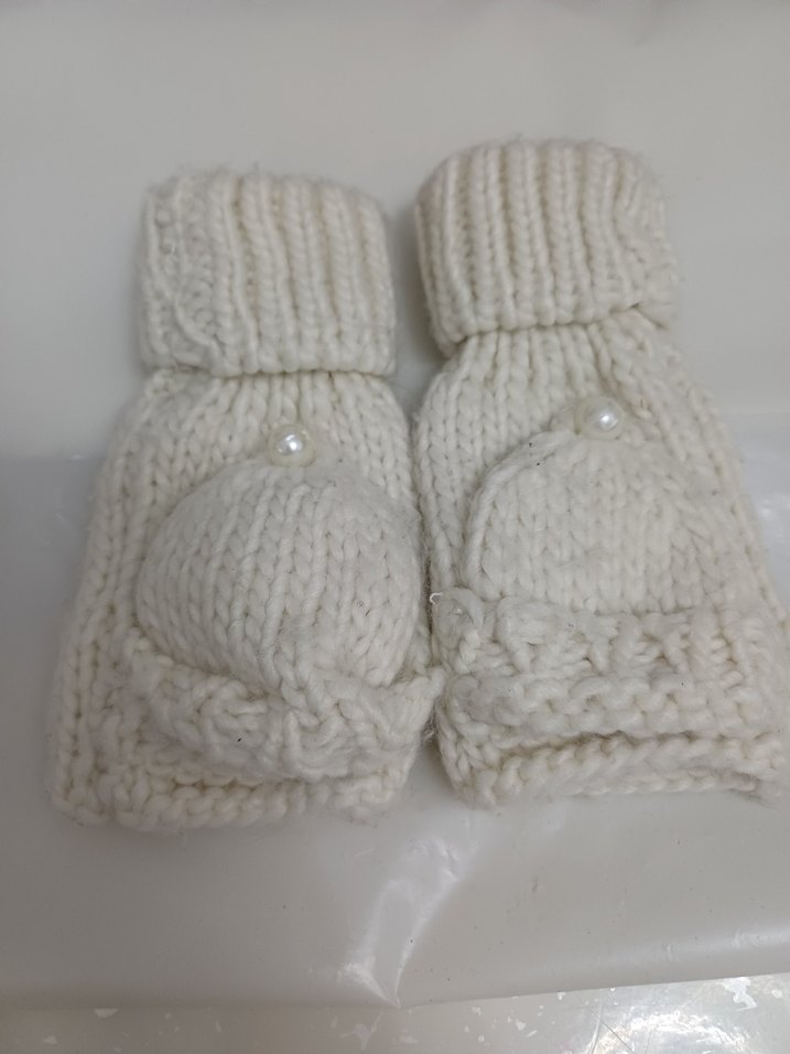 Yumuşak beyaz iplikle örülmüş kız çocuk eldivenleri, bohem tarzda ve kapakta küçük inci detayı bulunur.