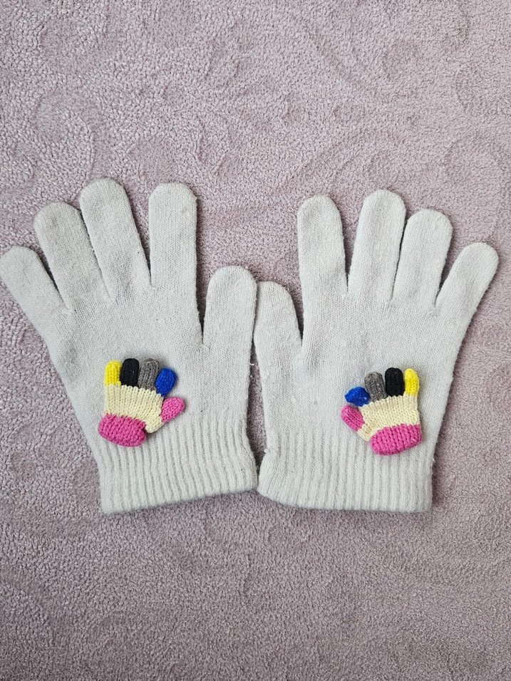 Renkli mini eldiven detaylı ekru renk kız çocuk eldiveni.6-9 yaş aralığına uygundur.