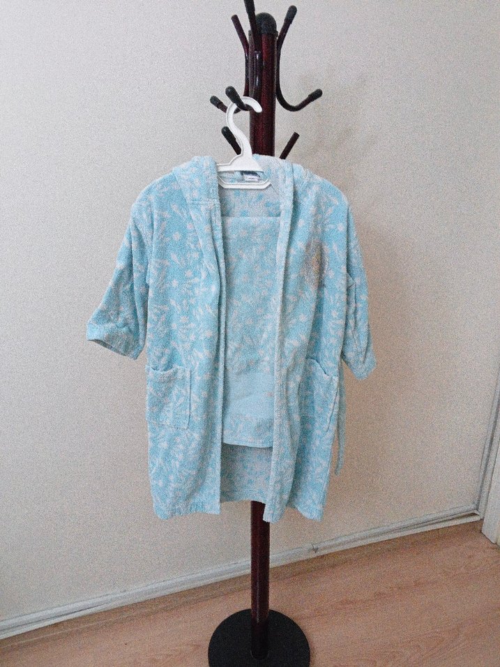 Elsa kız çocuk bornoz set.Sert yapısı vardır. %100 pamuktur. Güzel su çekiyor. Yırtığı söküğü yoktur. Elsalarında yıpranma mevcuttur. ikili fiyattır.