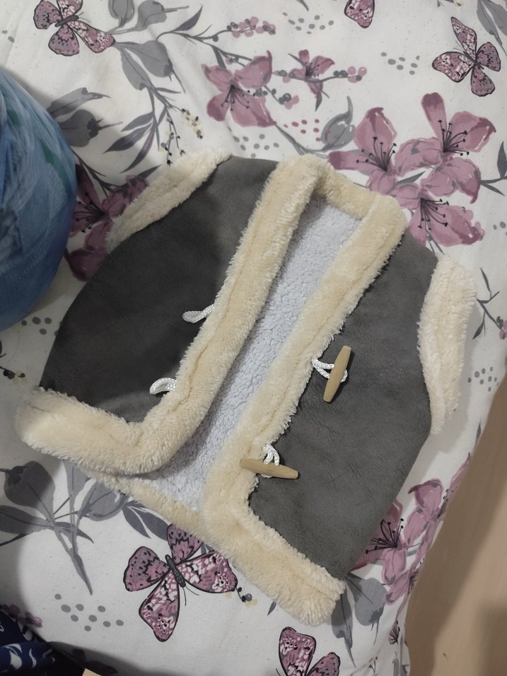 Kız çocukları için gri renkli, nakış detaylı ve yumuşak kürk detaylı, kolsuz, dar kesim yelek. Notched lapel yakaya sahip ve sıcak tutan fleece kumaştan üretilmiştir.