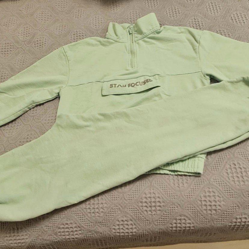 9-10 yaş aralığına uygun,açık yeşil,uzun kollu,lastikli eşofman takımı.Hiçbir kusuru yoktur.