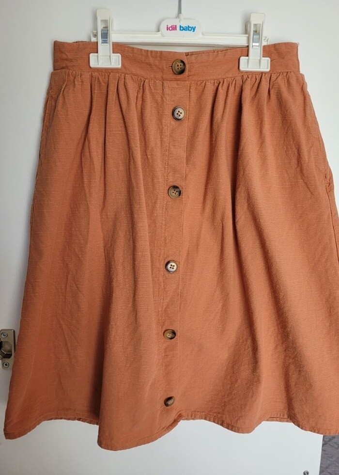 AZ KULLANILDI. RAHAT VE ŞIK BİR ETEK. TERTEMİZ. BEDEN 7-8 YAŞ. BELİ LASTİKLİ. BEDENE GÖRE 9 YAŞADA OLUR.