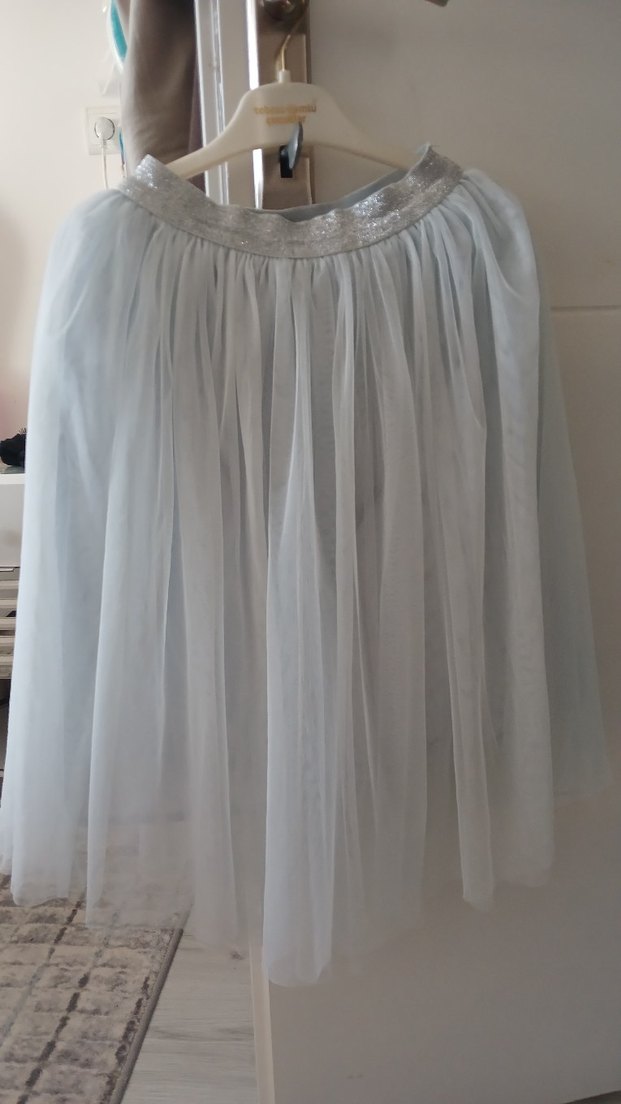 Bu kız çocuk eteği, bol kesimlidir. Yumuşak sentetik kumaştan yapılmış, ışıltılı beli ve bohem tarzı vardır.
