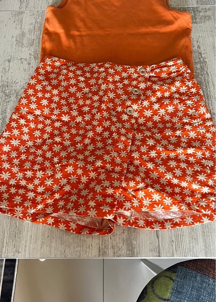 Kız çocuk turuncu bluz 10-11 yaş Papatya çiçekli şort etek 11-12 yaş
