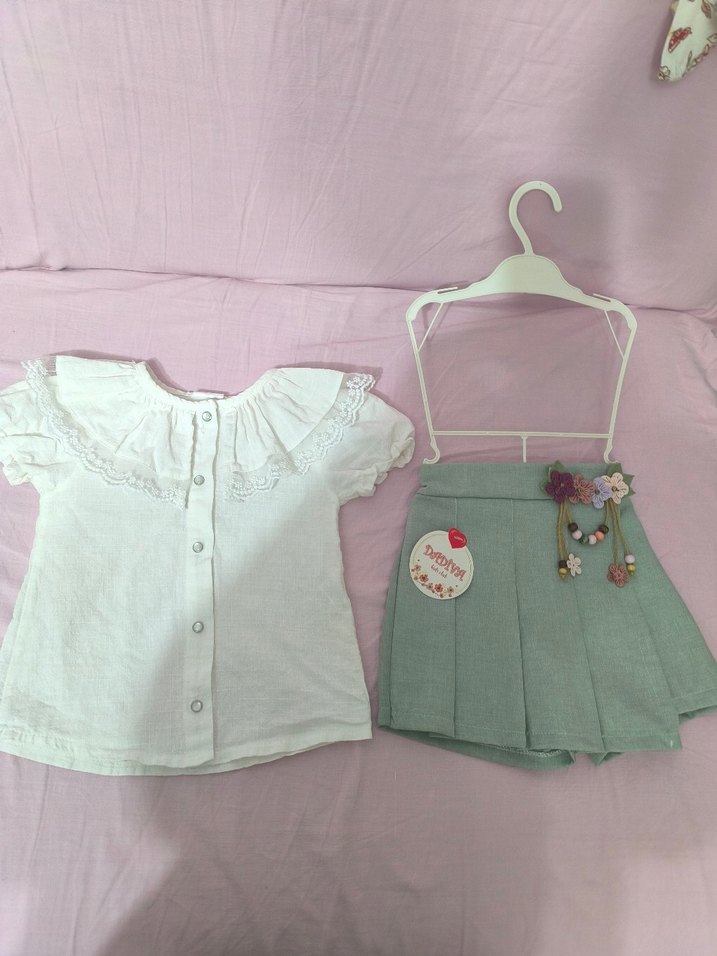 kız çocuk etek şortlu takım hiç kullanılmadi hediye gelmişti değişim tarihi geçtiği için küçük kaldi