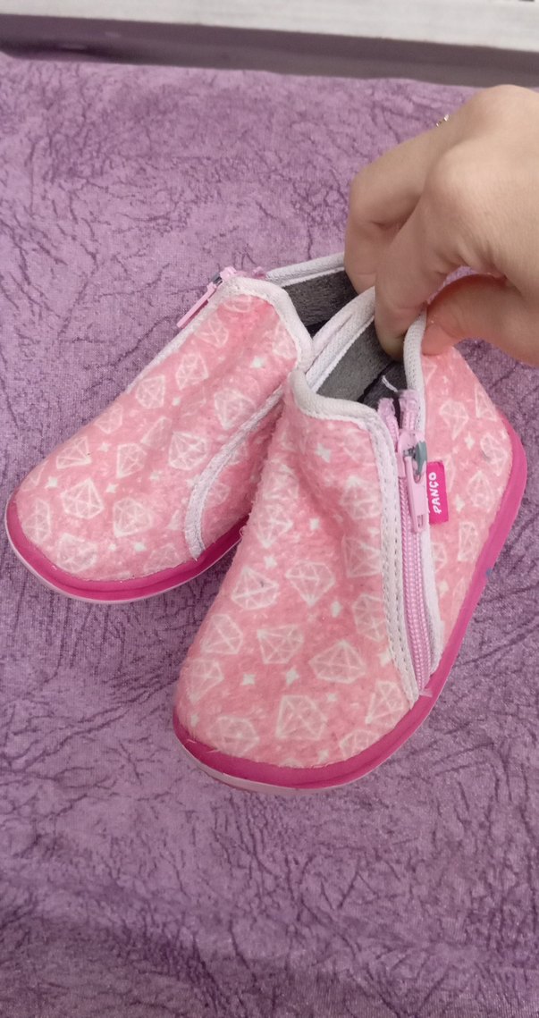 Kızlar için fermuarlı, pembe renkli, yumuşak ve sıcak tutan ev terliği. Renkli bağlama desenli, rahat ve şık sokak stili terlik.
