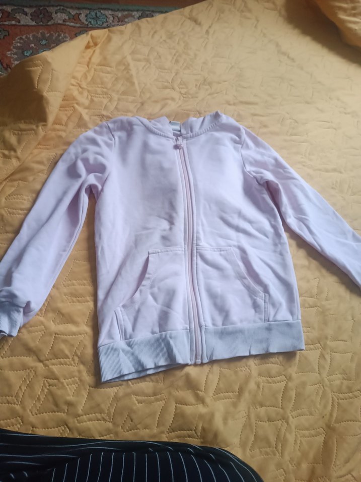 Kız çocukları için beyaz, fitted kesim sweatshirt. Uzun kollu, yuvarlak yakalı ve yumuşak kumaştan. Ön fermuar ve ceplidir, sade ve rahat bir sokak stili sunar.