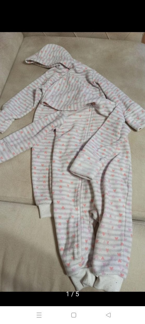 Uzun kollu, fermuarlı, yumuşak ve sıcak polar kumaştan yapılmış kız çocuk tulumu. Gri zemin üzerinde hafif kalp deseni ve kesimli yaka bulunur.