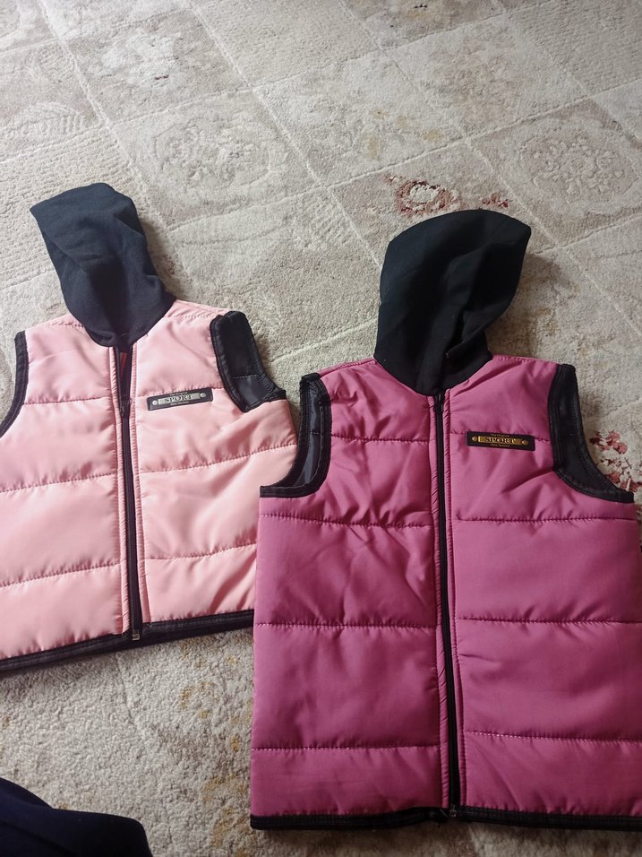 Kız çocukları için fit kalıp, kolsuz ve straplez tasarımlı fermuarlı yelek. Siyah kapüşonlu, pastel ve koyu pembe renklerde, yumuşak kumaştan üretilmiştir.